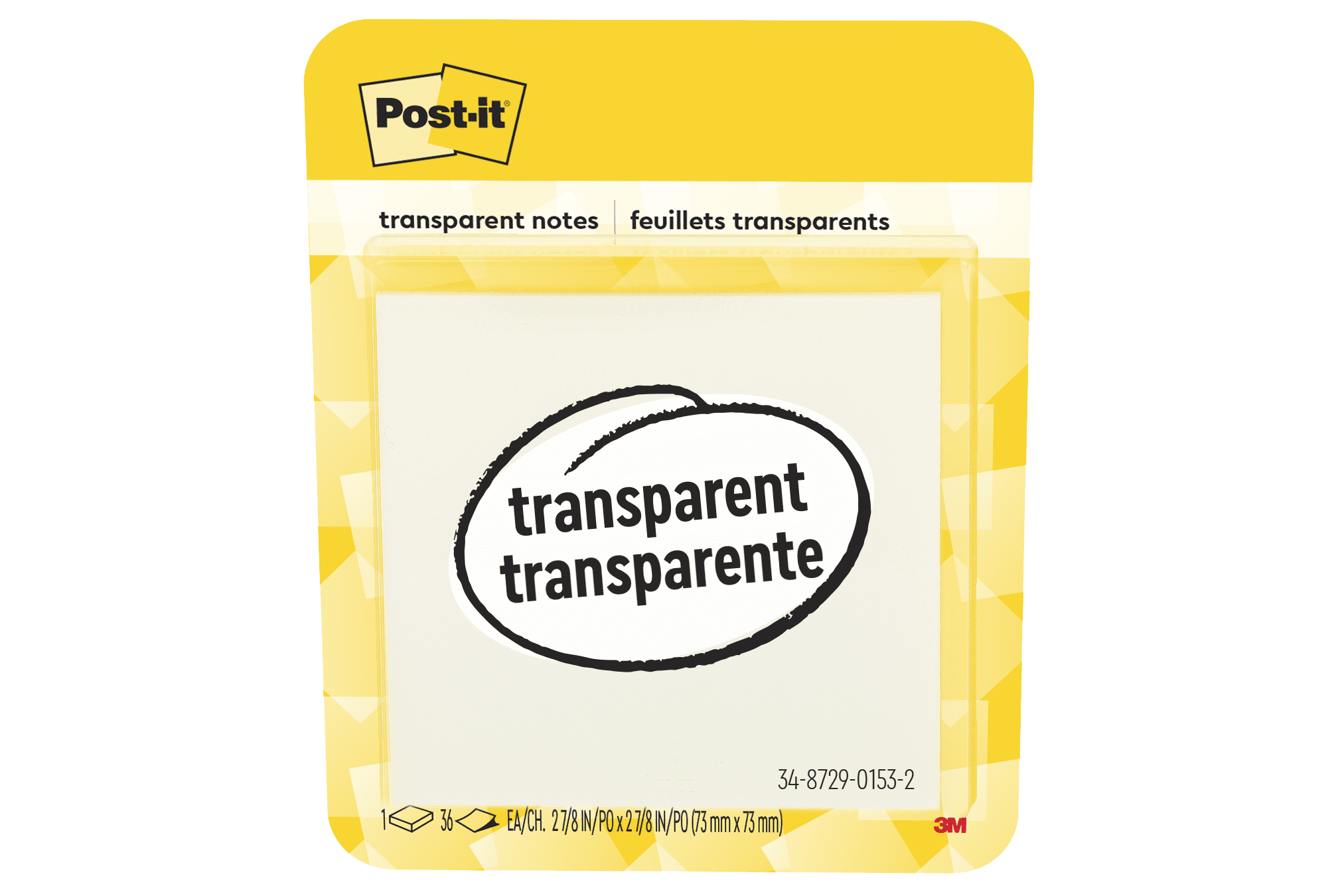 1 pad of 2.8 in x 2.8 in clear transparent notes with 36 sheets